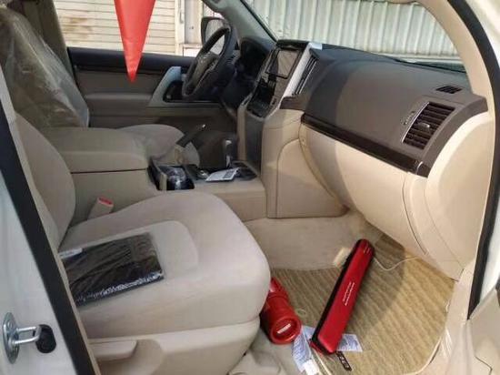 丰田酷路泽5700配置:(VX。R)12气囊配置:7座手续,流水转向灯,雷测,底盘升降,12气囊,蠕行,遥启,天窗,LED氙灯,冰箱,桃木真皮多功能方向盘,20轮,环车影像,真皮电动座椅,前排座椅通风,8速,电动后备箱门(油箱138L),10寸屏幕导航,JBL音响,10.1寸后座娱乐系统,全地形全时四驱,四区自动空调,一键启动,无线门锁,智能卡,中控锁,自动感应雨刷,大灯清洗装置,电动折叠后视镜,侧脚踏,前、后雾灯,自动远光灯,自适应性悬挂系统,防擦板照明,制动防抱死系统,刹车辅助,车辆稳定性控制系统(VSC),盲点监测(BSD),倒车后视辅助(RCTA),预碰撞安全系统(PCS),车道偏离警报(LDA),上坡辅助(HAC),胎压监测,扰流尾翼,顶轨,拖钩,全车镀铬,电尾门,高级木质尾箱。