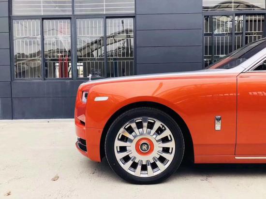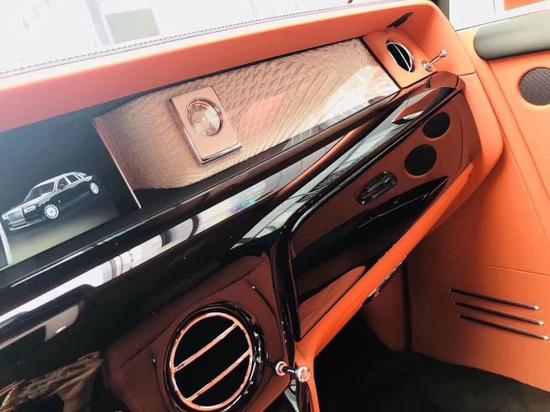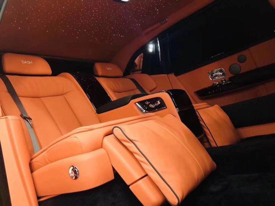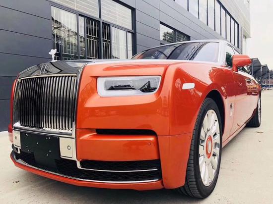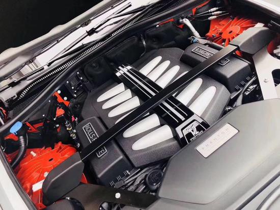 全新第八代劳斯莱斯幻影加长版,4门4座版本 6.7T,V12,571匹马力,8速手自一体,双涡轮增压,长*宽*高5990*2018*1656,轴距3772,时下最流行的爱马仕橘色缝线搭配曜石黑内饰,绝无仅有的搭配。通过对铝的完美使用,庞大的车身控制在2745KG重,并采用全新的N74B68A双涡轮增压6.7T V12发动机,最大功率420KW,在1700转下就可以发挥最大扭矩900NM,与八速手自一体变速箱的的通力合作,使新幻影0-100Km/h的加速仅为5.4秒。