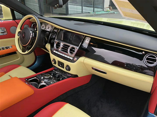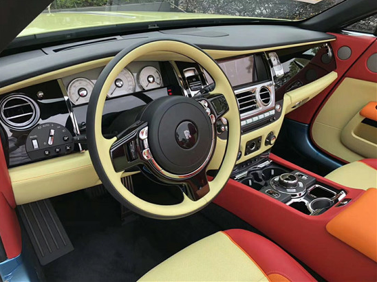 2018款劳斯莱斯曜影整个内饰与古斯特完全相同,设计十分古朴,顶级材料与精致手工搭配出了顶级豪华车才有的氛围,凡是能触及的地方均有皮质或实木覆盖,孟经理18522583647三辐皮质包裹方向盘的盘辐较大,给人一种沉稳扎实的感觉,方向盘可4向电动调节,调节更加精准,但不建议您在驾驶时操作,行车电脑信息通过左侧拨杆切换,操作较为简单。