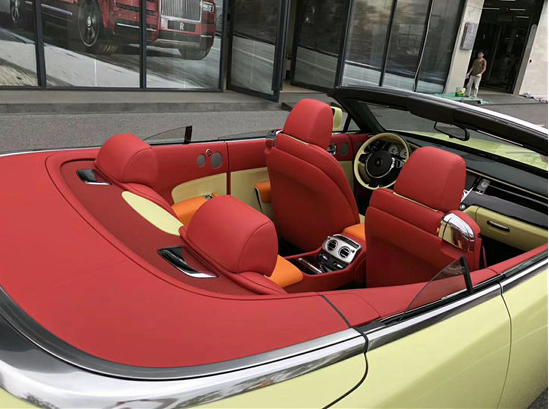 劳斯莱斯曜影采用可折叠软顶设计,新车为敞篷版因结构关系所以没有进行溜背式设计,尾部设计与Coupe版有所不同。劳斯莱斯曜影个性化定制版身高度还算人性化,孟经理18522583647进出比较方便,比有些加长的SUV还顺畅。