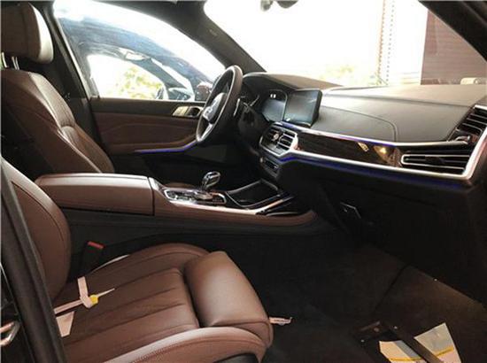 内饰方面:宝马X7车内彰显出强健的气魄和全面的道路适用性。真皮的多功能方向盘手感极佳,宽大的中控台简洁流畅,多功能电动驾驶座椅舒适性十足,整车采光效果十分出色。精准的操控、人性化科技配置以及自身品牌优势都是新一代宝马X7有力的武器。宝马X7通过中央控制器和控制显示屏,直观简洁地控制各种舒适和娱乐功能。新车独特的i-Drive系统可以提供诸多信息,使驾驶员在驾驶中更方便的控制车内系统。真皮座椅很柔软,乘坐舒适,前后排座椅都装备了加热和通风功能。