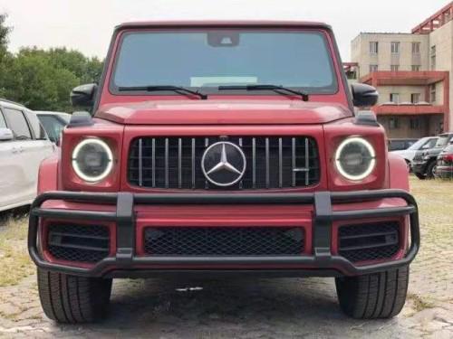 首先外观方面,这款车延续了大G系列的外观设计,依旧是G级经典的方盒子车身造型,不过一些边角处理要更加圆润一些,但是。整体依旧硬朗霸气,前脸采用了amg家族专属的直瀑式进气中网,上方还镶嵌了AMG的字母标,非常有辨识度,两侧是圆形的几何多光束LED大灯,前保险杠还做了熏黑处理,看起来更有力量感。