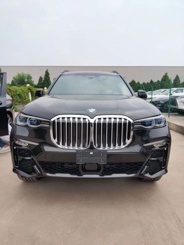 19款宝马X7 (配置|询价)外观高度还原X7iPerformance概念车设计语言,前脸配备硕大的双肾进气格栅,“天使眼”大灯组造型极为修长且采用开眼角设计,内部配备激光光源,最大照射范围可达600米。前保险杠中央为ACC自适应巡航传感器,两侧LED雾灯组与通风口融为一体,疏导气流的同时还可以为刹车系统进行散热。