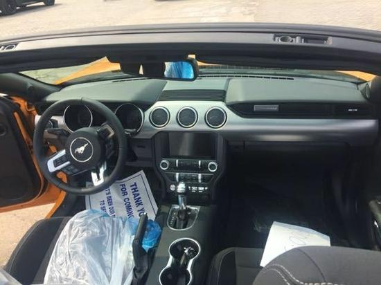配置:2019款加版福特野马敞篷2.3T标准版 10速变速箱, 17寸轮毂、独立后悬挂,盲点外后视镜、氙气大灯、仪表台带镀铬、真皮驻车制动手柄、真皮方向盘、后座椅可折叠、6项手动驾驶位座椅、AM/FM单碟CD带6个扬声器、后扰流板、LED雾灯、福特SYNC车载娱乐系统、一键式启动按钮、智能钥匙、倒影、