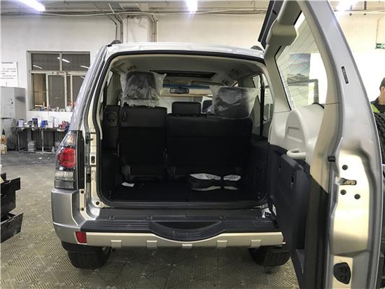 三门版现车配置:6缸,24气门,8气囊,高位制动灯,后传感器,LED日间行车灯,疝气近光灯 前雾灯,后雾灯,后车窗除雾系统,遮阳板,镀铬扶手,脚踏,前后挡泥板,行李架,皮革桃木方向盘,手套箱,巡航定速,动力转向,多功能方向盘,中央门锁系统,氛围灯,电子后视镜,可伸缩扶手,全自动空调,权力倾向和滑动天窗,6个扬声器,中差速锁,后差速锁,油箱75升,北美来福音响。