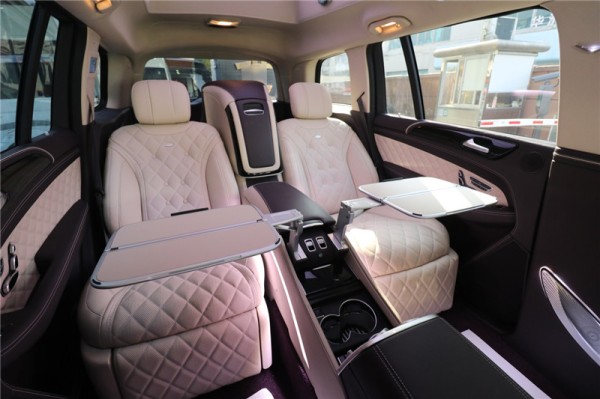 后舱也都是采用了重新的布局,每台座椅也都配备了折叠小桌板,为临时办公提供便捷。奔驰GLS450迈巴赫商务车后舱的座椅是采用德国原厂的迈巴赫座椅,非常舒适。并且可以多向调节,带记忆功能,还有通风加热按摩,都不在话下。独立航空座椅的功能非常强大,不仅带有常规的通风加热,还有气压按摩以及电动腿拖,舒适的智能座椅还可以一键成床,让贵宾一坐下就是一种奢华感包围着全身。