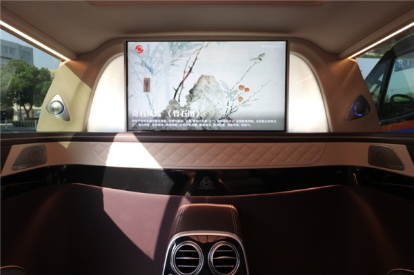 后舱才是这台车的精髓所在,坐进车内的感觉顿时豁然开朗,迈巴赫顶灯营造出非常亮堂的感觉,四周的全隐私玻璃也不会影响行车时的视线,前后舱雾化玻璃前的升降电视设计也是非常合理,旅途中可以看一部电影大片。奔驰GLS450迈巴赫商务车全车也是搭载了5.1声道环绕音响,扬声器品为柏林之声,配合电视看一场美国大片又或是听一场歌剧,对乘客来说简直是五星级的感受!