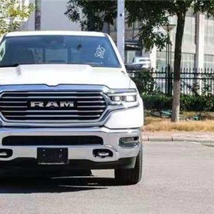 2019款道奇公羊大角牛不仅外观上刚劲有力表现出皮卡车所具备的硬朗风范,而且内部配备的豪华性在同级别车中同样可圈可点。道奇公羊长角号的眼神中没有透露出一丝的活泼神韵,唯一展现出来的只有凶狠。2017款道奇公羊长角号进气口位于右侧大灯的位置,高度在一米左右,高于绝大多数轿车和 SUV,另外20英寸的大脚也算是运动气质的一种表现。硕大的中网造型同样很震撼,“高鼻梁”的设计风格也是车头部位凶猛的精髓之处。车头使用了小幅前倾的俯冲式设计思路,意在突显霸气和威猛。