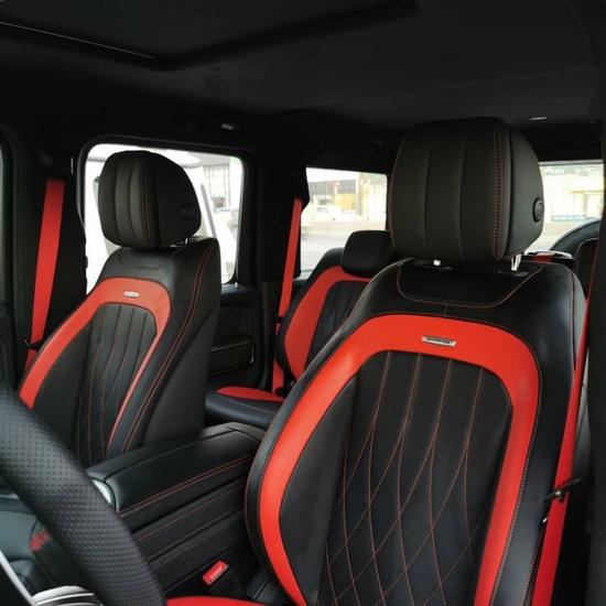 座椅方面,这款车采用了红黑双拼的真皮座椅,坐在上面非常舒适,另外还带有加热和通风等功能,让你长途驾驶也不会感到疲惫,在后排座椅G63还选装了液晶显示屏,这也是G500所没有的。