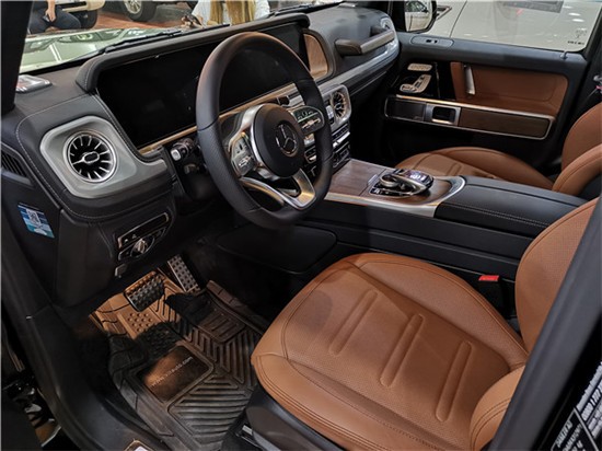 内饰焕然一新,虽然还是以平直的线条为主,但完全没 了上一代车型那种粗糙的感觉了,用料和做工都能令人满意。跟奔驰的很多其他车型一样,它也用上了双12.3英寸屏幕,科技感很强。三把差速锁按键依旧布置在中控台的正中间,这是奔驰G级 (配置|询价)的灵魂所在。