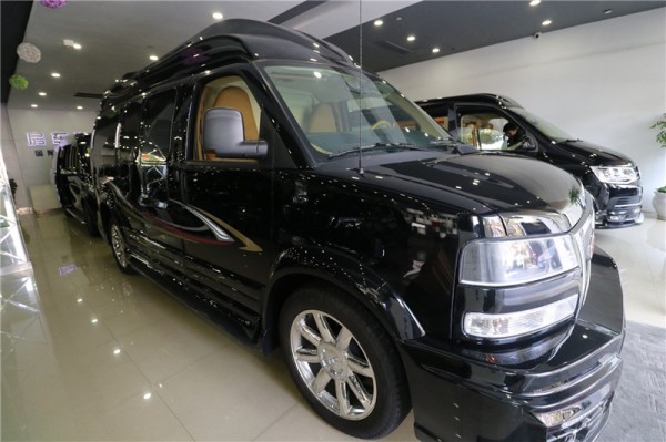 这辆GMC商务车七座的尺寸为5715*2098*2425mm,轴距3429mm,是个庞然大物。车辆采用的发动机是通用6.0升Vortec V8汽油发动机,最大功率241千瓦,最大扭矩506牛米,匹配6速手自一体变速箱。中控台设计简约,更多的偏向实用性,彩色显示屏提供即时倒车影像,为这个大块头的进退问题给出了更大的便捷。钢琴烤漆木艺装饰,配合鲜艳夺目的真皮座椅,彰显车内低调的奢华。