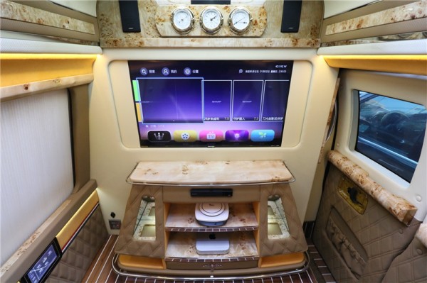 配套一系列家用电器与娱乐设备,类似家中的会客室,出现在一辆巨大的MPV车上,可以关照到你行程中的每时每刻,随你去到任何地方。专为GMC商务车七座定制的高清防震LED大屏电视(带电动升降功能),后舱独立的DVD车载影院系统、苹果Mac mini娱乐系统、Bose5.1全车环绕音响等顶级丰富的娱乐设备,为您从视觉、听觉、触觉上,原汁原味地感受音乐与电影的魅力。座椅侧边嵌入整车触屏中央控制系统,车内设备,随手掌控。