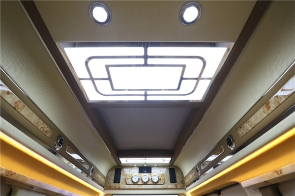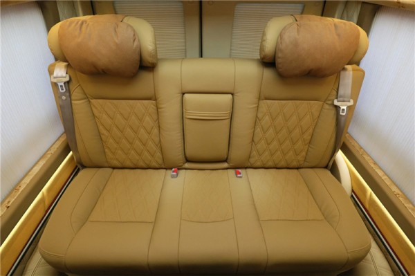 GMC商务车七座座椅方面:真皮座椅带腿拖脚拖,坐姿愈加多样性,愈加舒服。带电动8项调节、电动腿托、头枕、气动按摩、通风、加热等功能,车顶前后两块方形星光灯更容易令人愉悦,从而更好的促成商务谈判成功。包括驾驶座在内,全车7座均可实现多向电动调节,贵宾舱2张豪华加热、通风、气动按摩椅,支持前后旋转。将第二排座椅180°旋转后,即可与后排宾客促膝长谈。