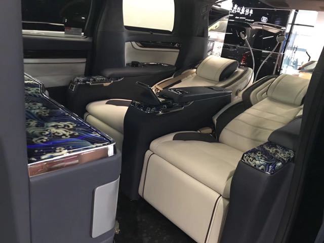 人体工学设计的豪华航空座椅,历经了匠心打磨,期间不断融入高端人群的乘坐舒适性反馈加以细节重铸,舒适度不断升级,更有贴心设计的靠枕带电动升降,完美满足各种身型的乘坐者在车内惬意身姿。经过定制改装的丰田埃尔法内饰,加装了精影复刻樱花元素珍稀龙血檀木定制地板,中央隔断一键雾化玻璃,可升降电视,打造后排专属私人空间,极尽奢华,身份的代表。头部发光顶棚必不可少的配以鹿皮顶,细腻的手感,大气的视觉效果再配以花束点缀。