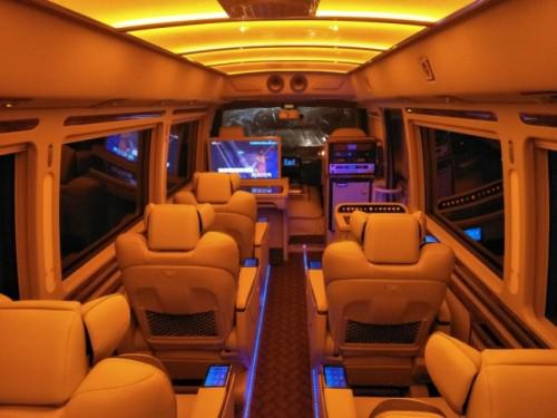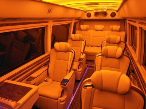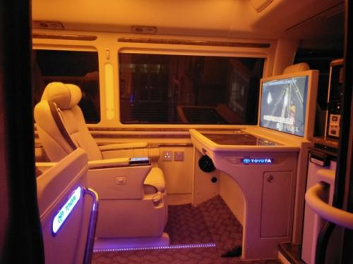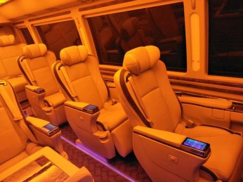 丰田考斯特车内配备了高档OTTOMAN意大利真皮航空座椅,并配置了电动脚托、电动靠背平躺。考斯特内部航空座椅前部可配备一张真皮汇报席办公桌,桌面配以多媒体数据转换接盒,实现多功能移动办公与会议展示。丰田考斯特改装商务车内饰的改装上,还有许多不同的细节的设计。对于旅行来说,乘车过程中难免会有许多烦闷之时,所以乘车过程中的娱乐活动可以帮助我们很好的打发时间,有一个愉悦的体验。,考斯特改装外观方面采用中空隔热隐私玻璃,镀铬、镀金标志,车身彩条庄重感与豪华感油然而生。