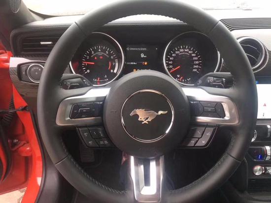 19款进口福特野马2.3T,基本配置:10速变速箱,17寸轮毂、独立后悬挂,盲点外后视镜、氙气大灯、仪表台带镀铬、真皮驻车制动手柄、真皮方向盘、后座椅可折叠、6项手动驾驶位座椅、AM/FM单碟CD带6个扬声器、后扰流板、LED雾灯、福特SYNC车载娱乐系统、一键式启动按钮、智能钥匙、倒影。