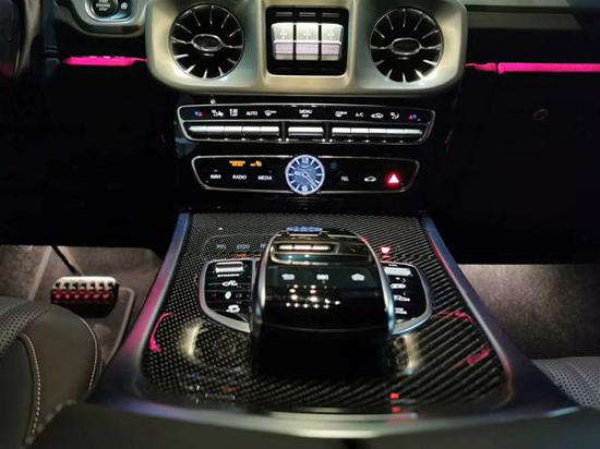 19款奔驰G63原先无论经历如何包装,选用各种高级材料重塑车厢,但从刻板的内饰面貌上只能传递出工具车的印记。如今进入全新奔驰G级 (配置|询价)的车厢后,能够看到最新奔驰家族化内饰设计,眼前的景象完全看齐自家SUV旗舰。车厢内除了经典的实木饰板外,还应用了金属、碳纤维和皮革等高级材质。2019款奔驰G63中控台中央位置,精心按照1中、2后、3前顺序安放有三把锁的控制按键,内饰布置在保持G级传统功能位置的同时,作以精心优化,做出了符合身价的科技感和豪华感。