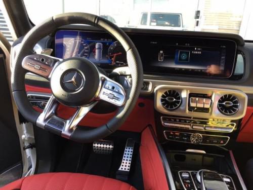 19款全新G63内饰方面,新G63保留了新G500的整体设计,除配色差异外,新车 还换装了全新造型的平底式AMG运动方向盘,其两侧配以打孔皮质包裹,下部镀铬装饰的造型也与新G 500明显不同,看上去十分战斗。此外,全液晶仪表盘+中控大屏的双12.3英寸屏幕设计在新车上也没有缺席,营造出了浓郁的科技感。