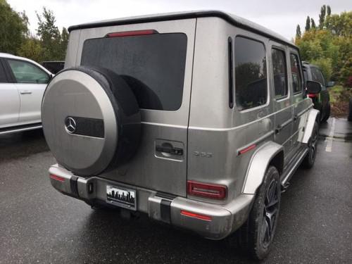 19款奔驰G63则使用5.5T V8引擎,AMG调校,最大功率585马力,最大扭矩850牛·米(老款为570马力和760牛·米),0-100km/h驾驶4.4秒,比老款快0.9秒,最高速度也由210km/h提高到了240km/h。AMG改装G63还可提供侧向排气管等更个性化的选装。