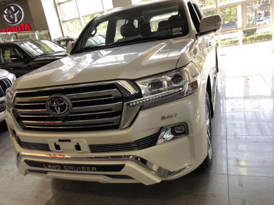 丰田酷路泽5700VXR前脸简洁大方,精悍帅气,中网采用了全镀铬设计,镀铬并贯穿大灯,大灯看起来更有立体感,头灯采用了透镜设计,光为氙气,远光为卤素,并且带有LED日间行车灯,但是变得更加的时尚。丰田酷路泽5700搭载5.7升V8发动机最高输出达到386匹马力,匹配8速手自一体变速器,换挡更加平顺,动力分配更加完美,并有效提高了油耗经济性和动力输出性。