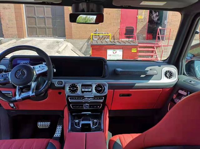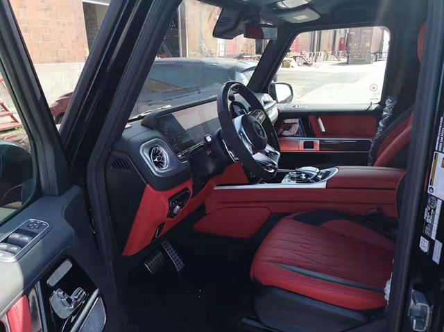 2019款奔驰G63内饰豪华气派,卓越的品质和精致的工艺在车内体现得淋漓尽致,对细节的精益求精是内饰设计中的重要原则。车内采用红色调与桃木装饰,红黑色真皮运动座椅非常舒适,方向盘以高档真皮包裹装饰,触感极其细腻,提高了整体的质感。各种功能按钮应有尽有,丝毫不次于豪华轿车的功能。 内饰焕然一新,虽然还是以平直的线条为主,但完全没 了上一代车型那种粗糙的感觉了,用料和做工都能令人满意。跟奔驰的很多其他车型一样,它也用上了双12.3英寸屏幕,科技感很强。空调出风口也改为重新设计的炮筒式,豪华感和科技感大大提升。