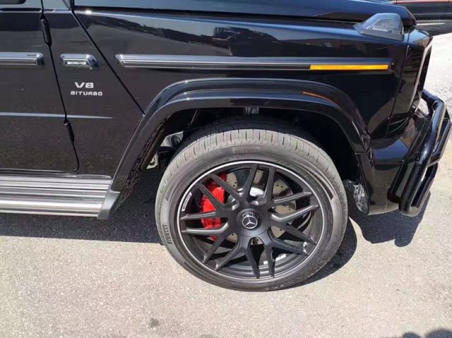 2019款奔驰G63整车的长宽高分别为4817mm/1931mm/1975mm,轴距达到了2890mm,与老款相比,车身长度增加了53mm,宽度增加121mm。与此同时,新车的涉水深度达到了700mm,比老款增加了100mm,接近角为31°,离去角为30°,均增加了1°,最大爬坡角度为45°,离地间隙增加6mm,达到241mm。另外,新车还运用了全新的钢铝混合结构,质量相比现款车型下降170kg,车身刚性相比上代车型提升了55%新车的轮毂造型更具运动风格,22寸的超大号双六辐式轮毂相当霸气,轮胎尺寸为295/40 R22。