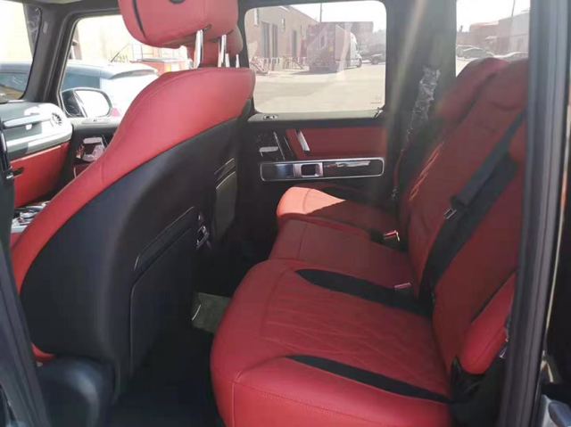 2019款奔驰G63新车采用了DESIGNO NAPPA打孔菱形真皮座椅,主动包裹式的座椅,乘坐感非常出色,前排为动态驾驶座椅,支持通风、按摩功能,同时前后排座椅都支持加热和调节,抬头是电动玻璃天窗,视野非常开阔,车顶采用的是DESIGNO高级翻毛皮顶,质感很好,脚底还配有DESIGNO丝绒脚垫。