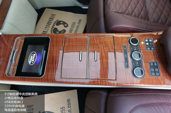 模特身高172cm,腿完全伸直还有很大空间,平躺着都可以,隔断可以升降和雾化,也不用担心隐私问题,三联表让你在后排也能知道这台皇家一号的工况,路虎的英文字母镶嵌在一块实木当中,一块IWC的钟表造价也是不菲,路虎皇家一号所用的品牌都是最顶级的,这样才能彰显路虎皇家一号的气场。