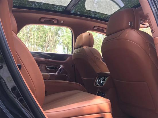 宾利添越后排宽大的座椅舒适性表现如前排一样优越,座椅质地也很柔软,包裹性和支撑性都很强,刺绣标示清晰夺目。四座版添越后排座椅功能更加丰富,但是相比五座版,唯一让人觉得遗憾的是靠背不可以折叠,因此备箱空间并不是很灵活。后排娱乐系统分辨率极高,画质非常清晰。