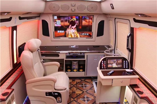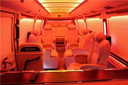 灯光是一项重要的改装项目。因为考斯特车内空间较大,原车配备的灯光设备不能满足乘客对光线的要求和需要。因此丰田考斯特在改装灯光上可以说是下足了功夫。车顶LED灯,阅读灯,方迎宾灯,氛围灯,立柱灯等等。一些力的灯光组合不仅满足了乘客在旅行中的阅读或办公的需要,更起到了调节气氛环境的作用!