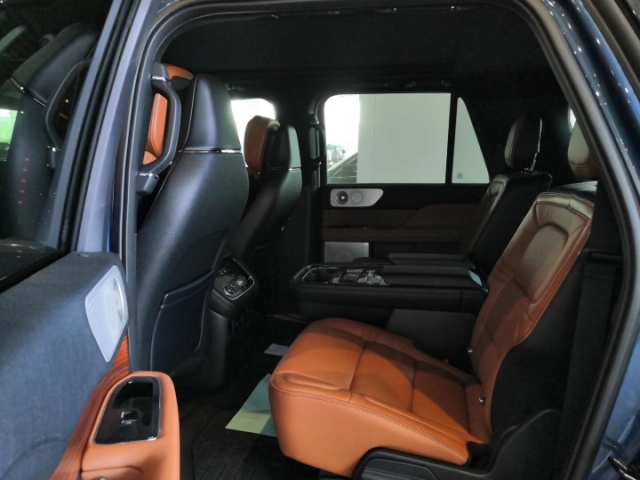 19款林肯领航员的内饰非常奢华,多功能方向盘,中控台的造型与宽大的车身相呼应,新车全部真皮包裹座椅,内饰采用桃木搭配设计,高贵典雅,加高加大的车身除了增加内部空间外,还给人营造一种尊贵典雅的感觉。最新林肯领航员新车采用了2+2+3的座椅布局,第二排采用了两个独立座椅,座椅内侧均配有扶手,舒适度超强。