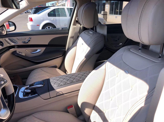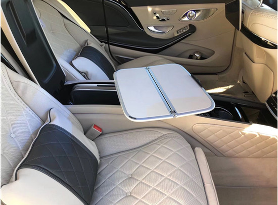 迈巴赫S560凭借行政座椅,前排乘客侧的后排乘客即使在长途行车中也能够完全放松。仅需按下一个按钮,便可将座椅设置到舒适的角度,最大倾斜角度为 43.5 度。一个附加的伸出式腿部支撑进一步增强了舒适性。配备电动可伸出式脚踏板时,能够创造出一个适合睡眠的舒适座椅角度。当座椅靠背倾斜度较大时,可以通过一个气垫增强乘客的安全保护效果。发生正面碰撞危险时,它可在座垫下展开,从而防止乘客从安全带下方滑出(潜滑)。