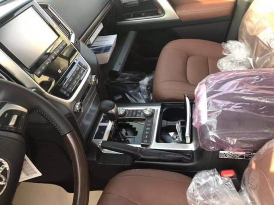 中东版酷路泽5700顶配的外观与其他配置的5700大有不同,外观带有前后大包围,前脸镀铬条中镶嵌流水灯,20寸的抛光轮毂,尾翼高位刹车灯,全车镀铬装饰,而且外观的前车标是镜面的,这就是ACC雷达测距系统也叫自适应巡航系统,尾部是VXS标识,这是顶配的象征。
