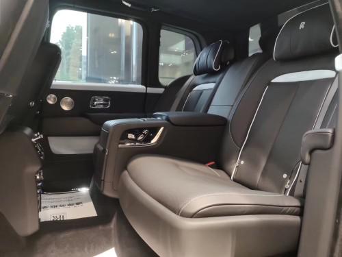 19款全新劳斯莱斯库里南配置:[基本参数]车长:5341mm,车宽:2164mm,车高:1835mm,轴距:3295mm,驱动模式:全轮驱动,变速箱:8速自动变速箱,引擎:6.75L V12 双涡轮增压汽油发动机,马力:563hp@5250rpm,转矩:605ft-lbs。@1600 rpm,悬挂:四轮独立悬挂/自适应悬架,[个性化定制],羔羊毛地毯,加强型时钟表面,前按摩座椅,所有头枕的字母“RR”组合,外观镀铬包,后排影院系统,发亮带花纹防止滑金属门踏板,劳斯莱斯定制音频系统,塞尔比灰色彩色缝合,松石绿对比座位管道线,乘客座位环绕加热,劳斯莱斯铭牌,水晶女神像,定制双拼内饰,野餐桌,驾驶员辅助系统,主动巡航控制系统,停车辅助,具有行人识别功能的夜视系统,外观风格:钨钢黑金属漆,单腰线,22寸7辐抛光轮毂,车轮中心与车轮相匹配,镀铬排气管,全景天窗,内饰风格:后座椅通风,加长单板中心线,门上女神像浮雕,开孔薰衣。