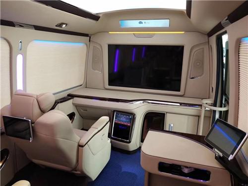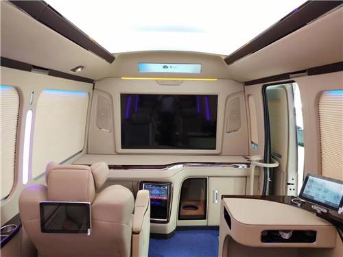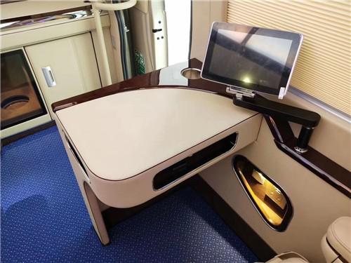 电动座椅、整车实木地板(地毯)、通道LED灯光、豪华高级办公桌(桃木+真皮)、豪华固定秘书桌、影音系统、220V电源插座、冷热毛巾消毒柜、进口侧开门冰箱、隐藏式不锈钢雨伞柜、豪华空客A380多彩顶灯、5.1声道高音喇叭、阿尔派低音喇叭、AV系统32寸车载专用显示器、豪华电动百褶窗帘豪华全隔断、空气净化器等等。