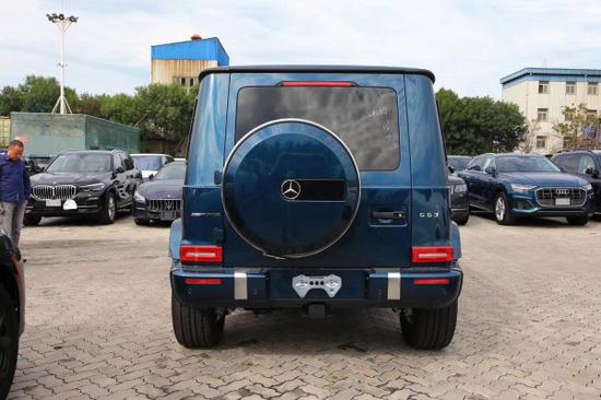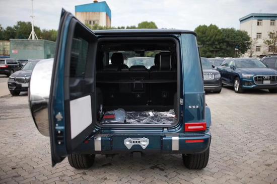 车尾,后挂设计直观彰显它的越野地位,两侧的小标志则直观显示了这款车的车型身份。矩形的红色尾灯与方正的车身造型形成呼应,点亮后的辨识度非常不错。有着AMG性能排气系统,带来更刺激的声浪体验。同时它还带有AMG控制自适应阻尼架,让它有着更好的通过性。