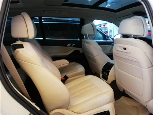 宝马X7的豪华感自然不用多说。数字化液晶仪表盘与中控屏都是12.3英寸的,中控台上有一系列按钮和拨动开关,包括iDrive拨盘,换档,驱动模式和悬架高度等,注重操作感的宝马为宝马X7的内饰带来了一丝优雅与空间感。不得不提的就是其为第三排乘客配备了全景天窗,让第三排乘客不会感觉到压抑感。而当夜晚来临时,新车全景天窗部分会发出独特的光,而天窗处LED氛围灯也会模拟出星空的显示效果,其氛围感极强。