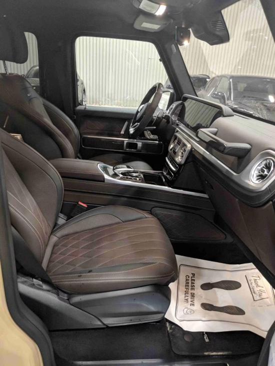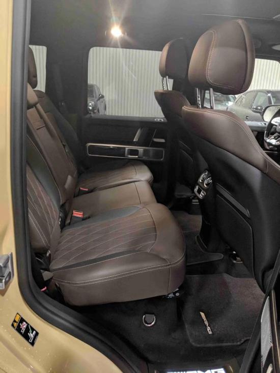 19款奔驰G63拥有宽敞充裕的车内空间和多种座椅布局方案,能够充分满足您对空间自由度的要求。中控台多处均采用碳纤维材料覆盖,带彩色TFT显示屏的AMG仪表盘、AMG主菜单和单独的挡位显示器以及采用白色照明的AMG门槛。名贵的选材及精湛的内装令人拍案叫绝。