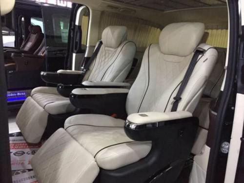 配置:19款中东版V250,63.5W,配置:陆耐,航空座椅,沙发床,主副座椅包覆真皮,主副门板包覆,中门门板包覆,B柱+车厢两侧内饰板包覆,尾门包覆,鹿皮顶(行云流水),半桃木方向盘 仪表台下部包覆 拉手、内饰件喷漆 全车桃木 侧墙、中门氛围灯+亮条 迈巴赫顶灯 迈巴赫钟表 高光印花地板+水晶垫 扶手箱带冰箱 中排连体踏板 ,定制迎宾踏板 (迈巴赫款+水晶垫)行李架,LED大灯,倒影,镀铬出风口,全车隔音,18寸迈巴赫轮毂,小包围+日行灯,头枕娱乐屏,后靠背原装桌板,中网喷漆,窗帘,奔驰镜面标,锁止按钮[联系方式在文章下方,购车送好礼等活动]