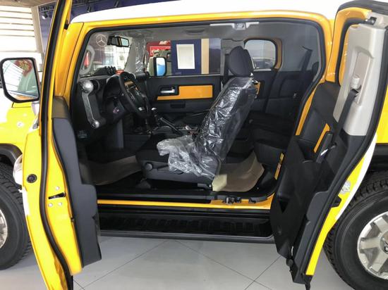 19款酷路泽FJ 4.0配置:两气囊、双油箱、17寸合金轮、布座椅、车身同色仪表板、地毯、真皮方向盘、JBL音响、仪表板仪器显示、手动空调、巡航控制、蠕行模式、电动车窗、动力转向、中控锁、驾驶员乘客侧面扶手、无线门锁、后窗雨刮、踏板、银色门把手、银色进气栏、银色后视镜、门镜-电动和照明灯、防抱死系统、车身稳定控制、主动牵引力控制、前排双气囊、差速锁、胎压监测、后停车传感器。