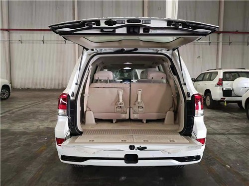 19款中东版丰田酷路泽5700顶配的外观与其他配置的5700大有不同,外观带有前后大包围,前脸镀铬条中镶嵌流水灯,20寸抛光轮毂,尾翼高位刹车灯,全车镀铬装饰,而且外观的前车标是镜面的,这就是ACC雷达测距系统也叫自适应巡航系统,尾部是VXR标识,这是顶配的象征。