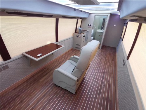 丰田考斯特改装商务车充分展现了改装的神奇之处,丰田考斯特改装商务车,对于照明的设计上,我们可以选在车顶安装LED大灯,满足我们照明的需要。同样也可以安装彩色航空顶灯,营造车内不同的氛围,也是的丰田考斯特在内饰的环境上展现出与众不同的色彩。可以使用游艇木地板或者祥云地毯,阻燃安全又美观。