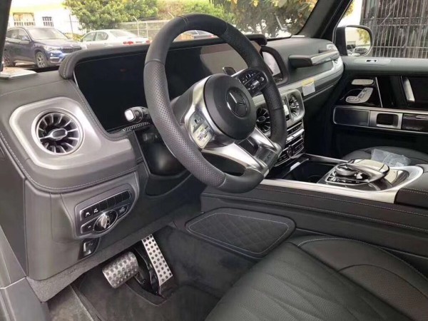内饰方面其实才全新一代G级最大的变化。新车换上了奔驰最新家族式的内饰设计,这无疑让G级拥有了旗舰级应有的豪华感,不过经典的副驾驶席扶手和三把锁的开关键依旧延续了经典设计,并设置在中控台最显眼的位置。其中双12.3英寸高清屏,虚拟仪表盘与中控液晶屏融为一体,视觉上形成一个宽屏驾驶舱,中部的涡扇式空调出风口也颇具设计感,还大量采用了皮革的包覆。另外,新一代G级还对驾乘空间也进行了优化。