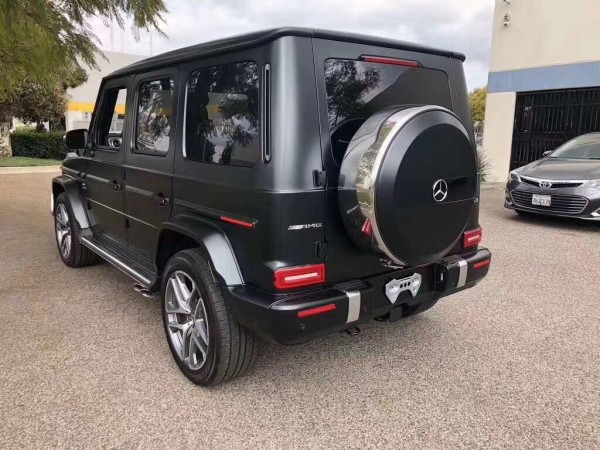 19款奔驰G63 (配置|询价) AMG与普通版车型相比,奔驰G63 AMG外观采用了大尺寸前保险杠、全套车身动力套件、奔驰G63 AMG还配备了镀铬中网和V12 BITURBO标识彰显这款车的身份。奔驰G63 AMG采用AMG车型特有的轮拱饰条、不锈钢迎宾踏板以及不锈钢防擦条,挡泥板上的“V8 BITURBO”标识以及后门上的“G63 AMG”铭也十分醒目。
