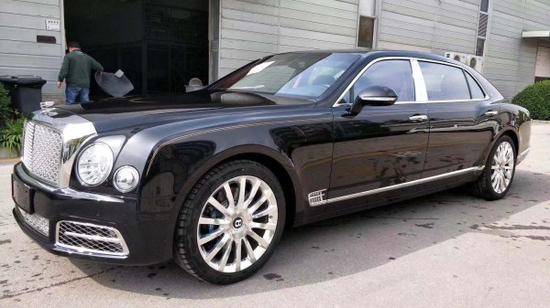 宾利慕尚加长版车头伫立着一个英文字母B(为宾利汽车创始人Bentley名字的首字母),被一对飞翔的翅膀环绕,整体恰似一只展翅高飞的雄鹰,皇家范十足。