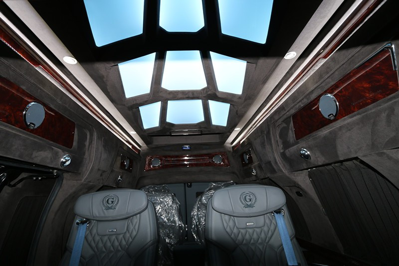 GMC商务之星的车身高度虽然超过两米但一般在市内不会被限行,这和奔驰斯宾特对比起来无疑是一个很大的优势,而且内部空间也非常大。GMC的车身尺寸(长宽高)为:5715*2098*2425mm,轴距达到了3429mm。配套265/50R20高亮圈/扁平轮胎。