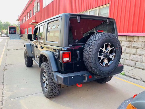 19款吉普牧马人前脸格栅采用经典的七孔折痕设计,看上去更精致,而不乏力量感,前大灯呈双圆形设计,LED日间行车灯移到了两侧的轮供上面,前雾灯集成在前保险杠两侧。19款吉普牧马人尾部呈四方形设计,尾灯采用四边形灯带设计,还配备了后挂式备胎,后保险杠向外突出,保险杠下方还配备了挂钩设计。