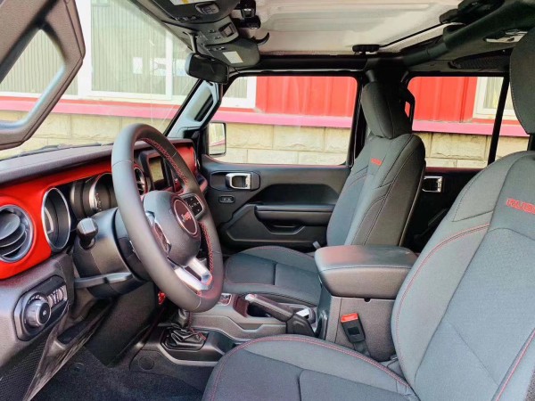 2019款吉普牧马人内饰采用双色设计,采用三幅式多功能方向盘设计,配备双圆形机械仪表盘,中控台配备内嵌式触摸屏设计,下方保留了大量实体按键。2019款吉普牧马人入门版配备7英寸信息娱乐系统显示屏,高配版8.4英寸内嵌式触摸屏,集成地图导航功能。