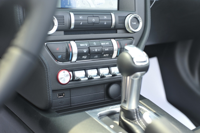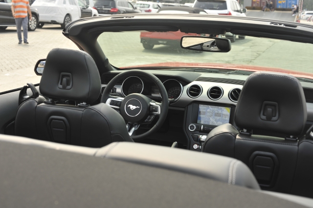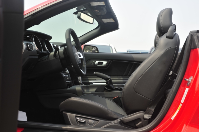 18款福特野马加版2.3T车门开启角度很大,前排乘员上下非常方便,内饰简单中透露着一种原始的粗犷和令人上瘾的机械感,三幅方向盘直径很大,握在手里有种掌控一切的感觉。宽大的真皮座椅和门板整片的塑料都是绝对的美国车范儿。内饰简单中却透露着一种原始的粗犷和令人上瘾的刺激感。中控台上的元素进行重新布局,门板上的按钮在高度上呈对称布局,人体工学效果极佳。