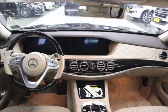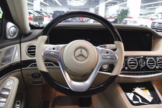 19款奔驰迈巴赫S560四驱内饰整体运用双色配色方案,提供64色带有10种主题的氛围灯和大面积的全新木纹装饰。新车采用带有触控键的三辐式方向盘搭配一体化设计的双12.3寸高分辨率显示屏,科技感十足,并且加入前、后排手机无线充电功能及头等舱级后排独立座椅,内饰的改动更加偏向保守